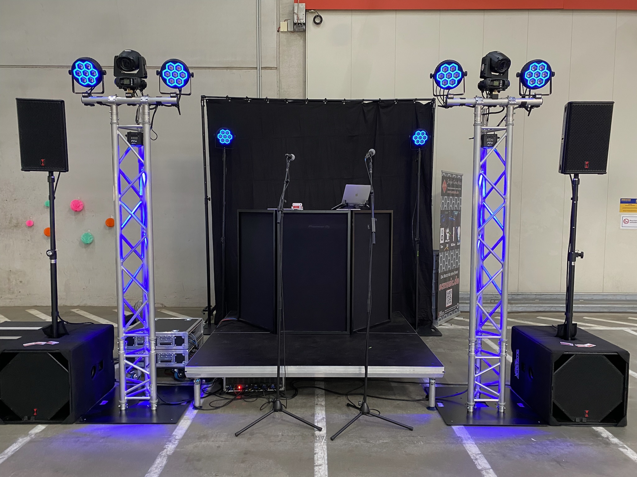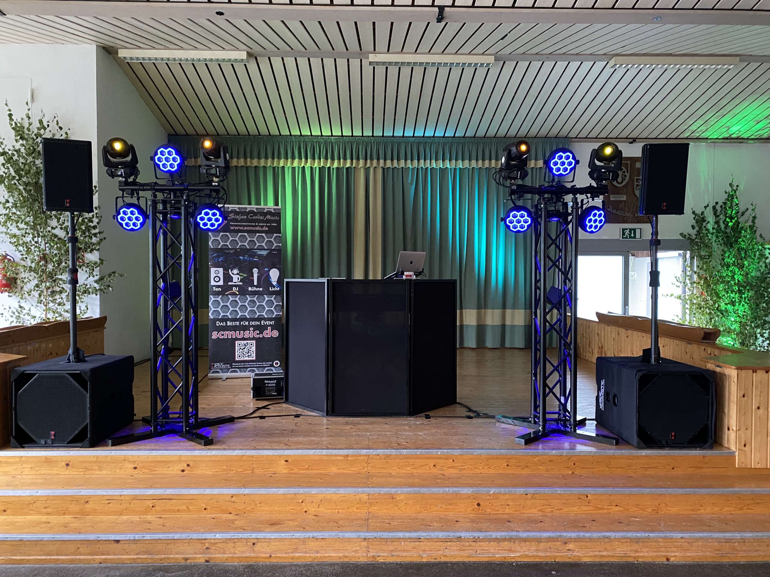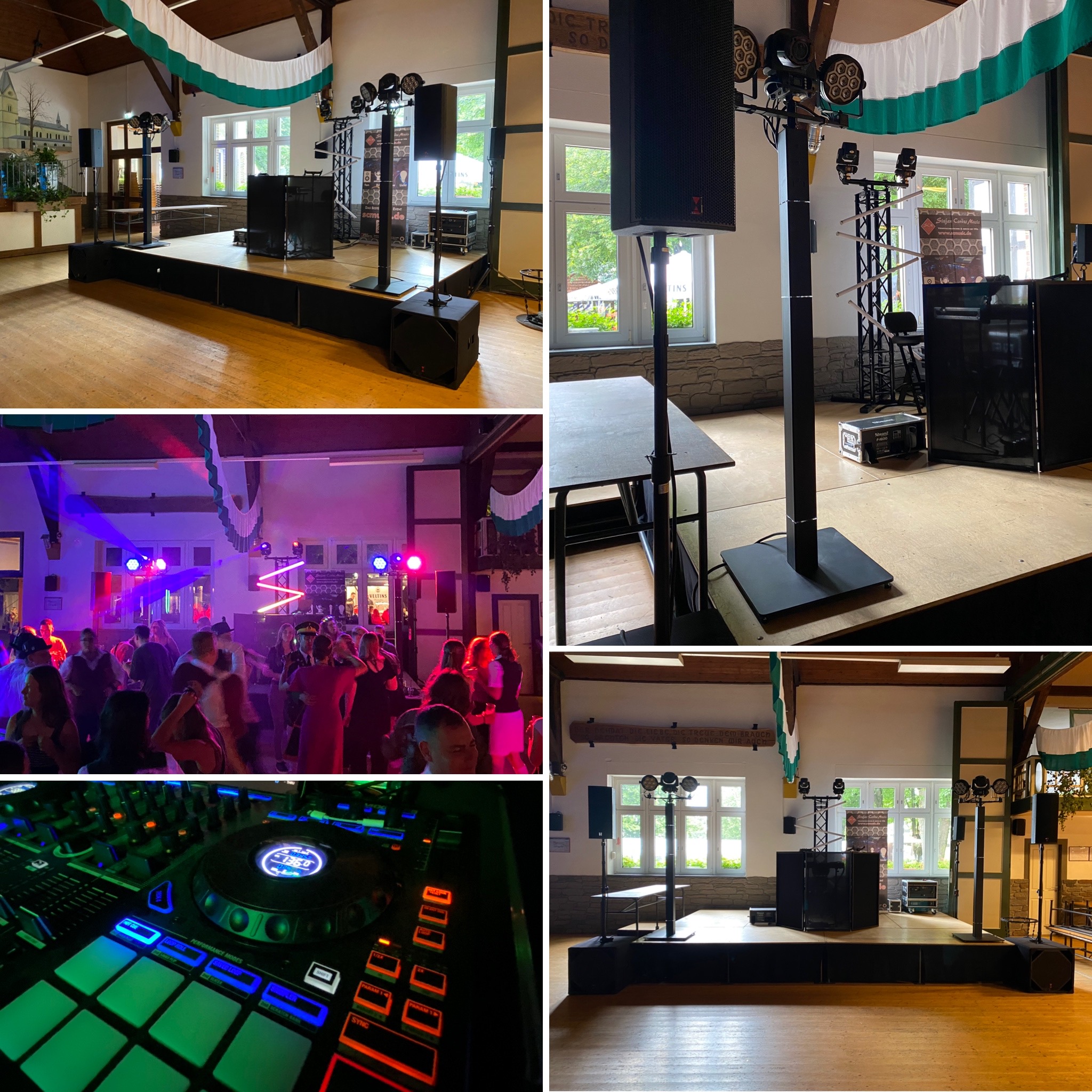 Die Beispielsets zeigen eindrucksvoll, wie vielfältig unsere Arbeiten sind. Jeder Auftrag ist einzigartig und wird individuell geplant und realisiert. Wir können je nach örtlichen Begebenheiten optimale Ergebnisse erzielen und auf (fast) alle Kundenwünsche eingehen. Alle Projekte haben garantiert den bestmöglichen Sound und die Lichtsets schaffen ein eindrucksvolles Ambiente. Die Auswahl der jeweiligen Lichteffekte hängt u.a. davon ab, ob in der jeweiligen Location die Nutzung von Nebel-/Dunstanlagen erlaubt ist.