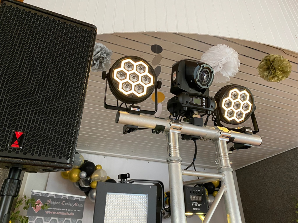 Wir setzen Ihre Feier ins richtige Licht. Die Lichtanlagenanlagen werden – wie die Beschallungsanlagen – für Ihre Veranstaltung zusammengestellt. Wir bieten Ihnen verschiedene Lichtsysteme (z.B. Grundbeleuchtung, Discobeleuchtung, Ambiente-Licht, verschiedene Effekte, Scanner, Movingheads und Nebel) an. Die Lichtsysteme eignen sich für Feiern bis zu 1500 Personen. Für größere Veranstaltungen können dann entsprechend umfangreichere Lichtsysteme an Traversen zusammengestellt werden. Unsere Lichtsysteme können sowohl mit DMX-Kabeln, als auch per Funk angesteuert werden. Selbstverständlich beraten wir Sie für Ihre Feier oder Veranstaltung.