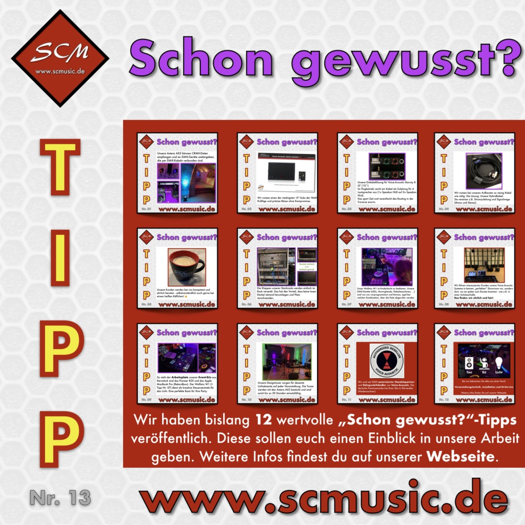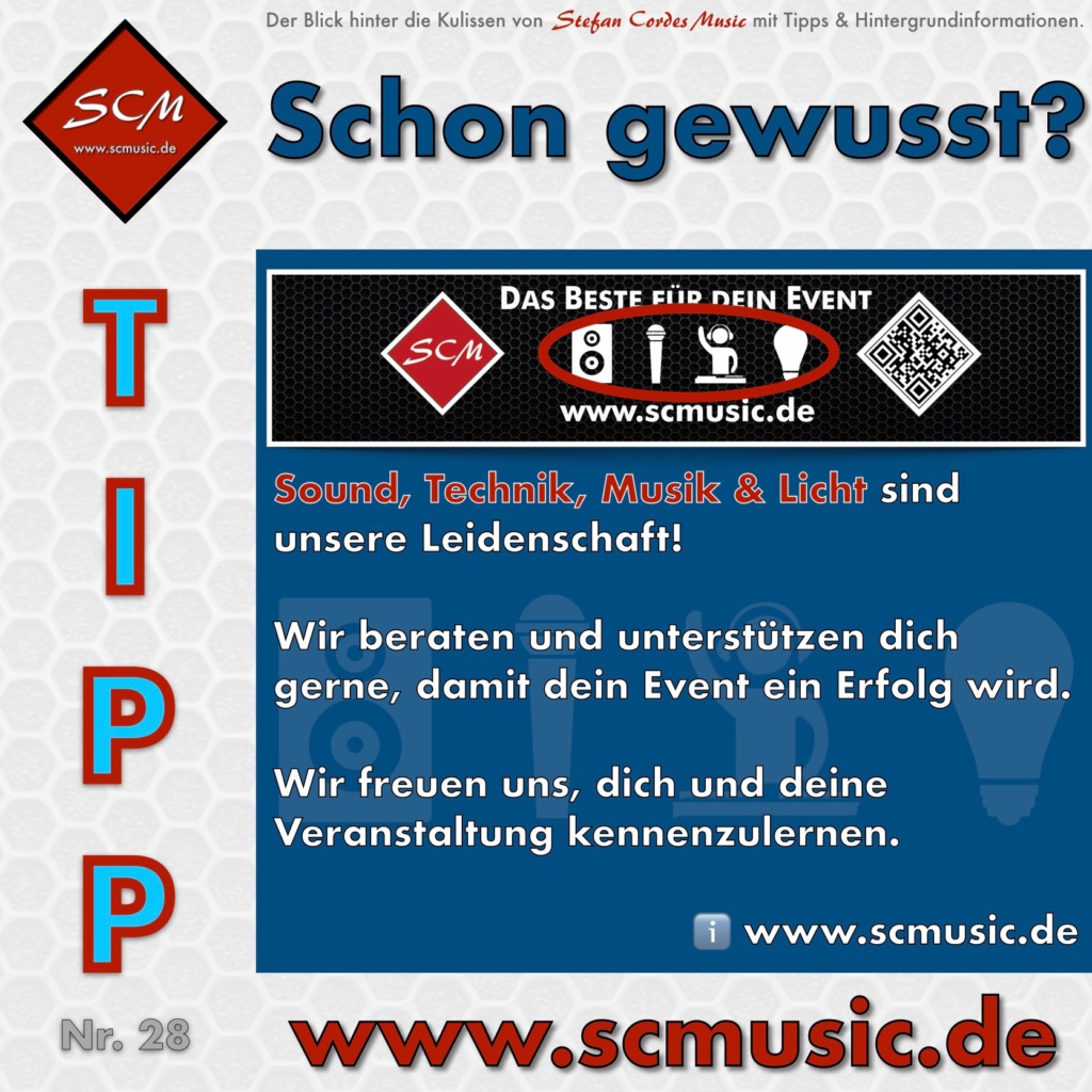 Sound, Technik, Musik und Licht sind unsere Leidenschaft! Mit den Tipps 24-28 konnten wir den Einblick hinter unsere Kulissen etwas veranschaulichen. Wir beraten und unterstützen Sie gerne, damit Ihr Event ein Erfolg wird. Wir freuen uns, Sie und Ihre Veranstaltung kennenzulernen und auch umzusetzen.