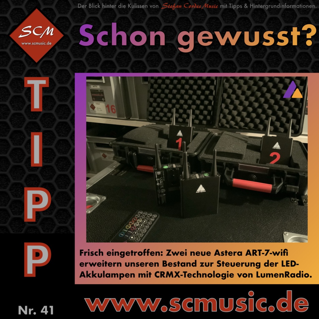Unsere Technik ist immer auf dem neuesten Stand. Regelmäßig tauschen wir unseren Altbestand aus oder wir ergänzen bewährte Technik, wie z.B. die Astera Art-7 Funksteuerungen für unsere Astera Akkuspots.
